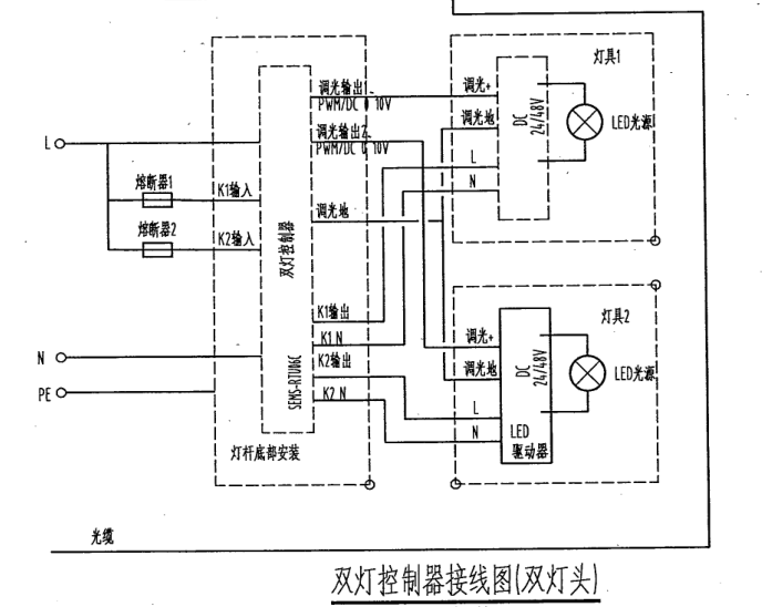 單燈控制器接線圖 雙燈控制器接線圖: