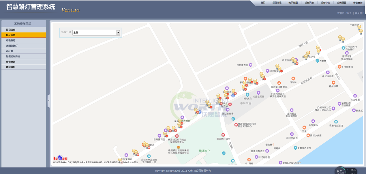 | 監(jiān)控終端配有RS-485通信接口,可RS-485數(shù)字電能表通訊,實(shí)現(xiàn)自動(dòng)遠(yuǎn)程抄表。同時(shí)具備CAN-BUS接口、RJ-45網(wǎng)口,方便集成第三方系統(tǒng)。 | 系統(tǒng)支持GIS地理信息功能,可以在地圖上方便地進(jìn)行監(jiān)控操作,比如單燈開(kāi)關(guān)燈控制、單燈巡測(cè)、查看單燈基礎(chǔ)信息和運(yùn)行狀態(tài)等。 |